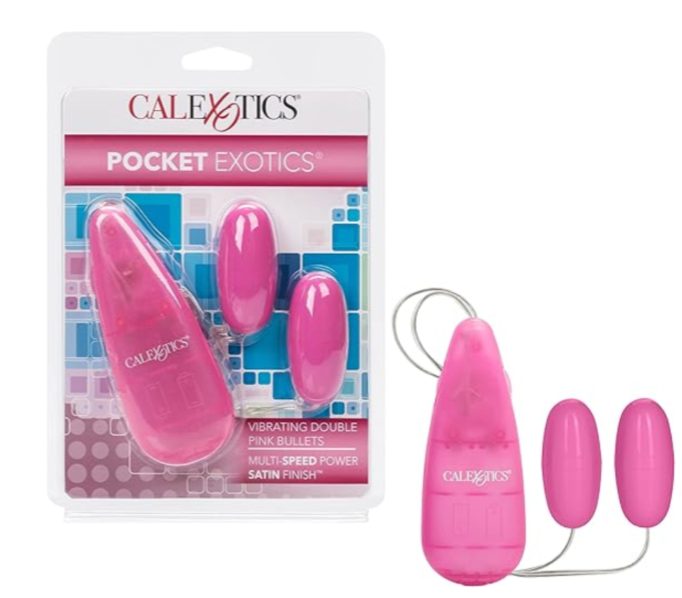 Las balas vibratorias dobles rosas de Pocket Exotics están hechas de ABS, lo que las hace seguras, sensuales y estimulantes. Si anhelas balas vibrantes que ofrezcan un placer suave y sexy. Estas balas sensuales tienen todo lo que necesitas para conseguir lo que deseas: lo último en placer sensual. Las balas rosas dobles estimulantes y súper satisfactorias ofrecen una satisfacción a varias velocidades en una forma suave y sensual.